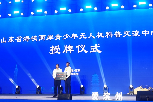 开幕式上,山东省人民政府台湾事务办公室主任张连三向我校授予“山东省海峡两岸青少年无人机科普交流中心”牌匾,标志着我校在推动两岸科技文化交流方面取得了新进展,为进一步提升两岸交流与社会服务水平创造了良好平台。